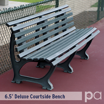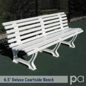 Multi-Purpose Tennis Court Sport Bench 6 ½’ L, Available in Green, White, or Blue. Made of tough and durable polyurethane molded plastic.